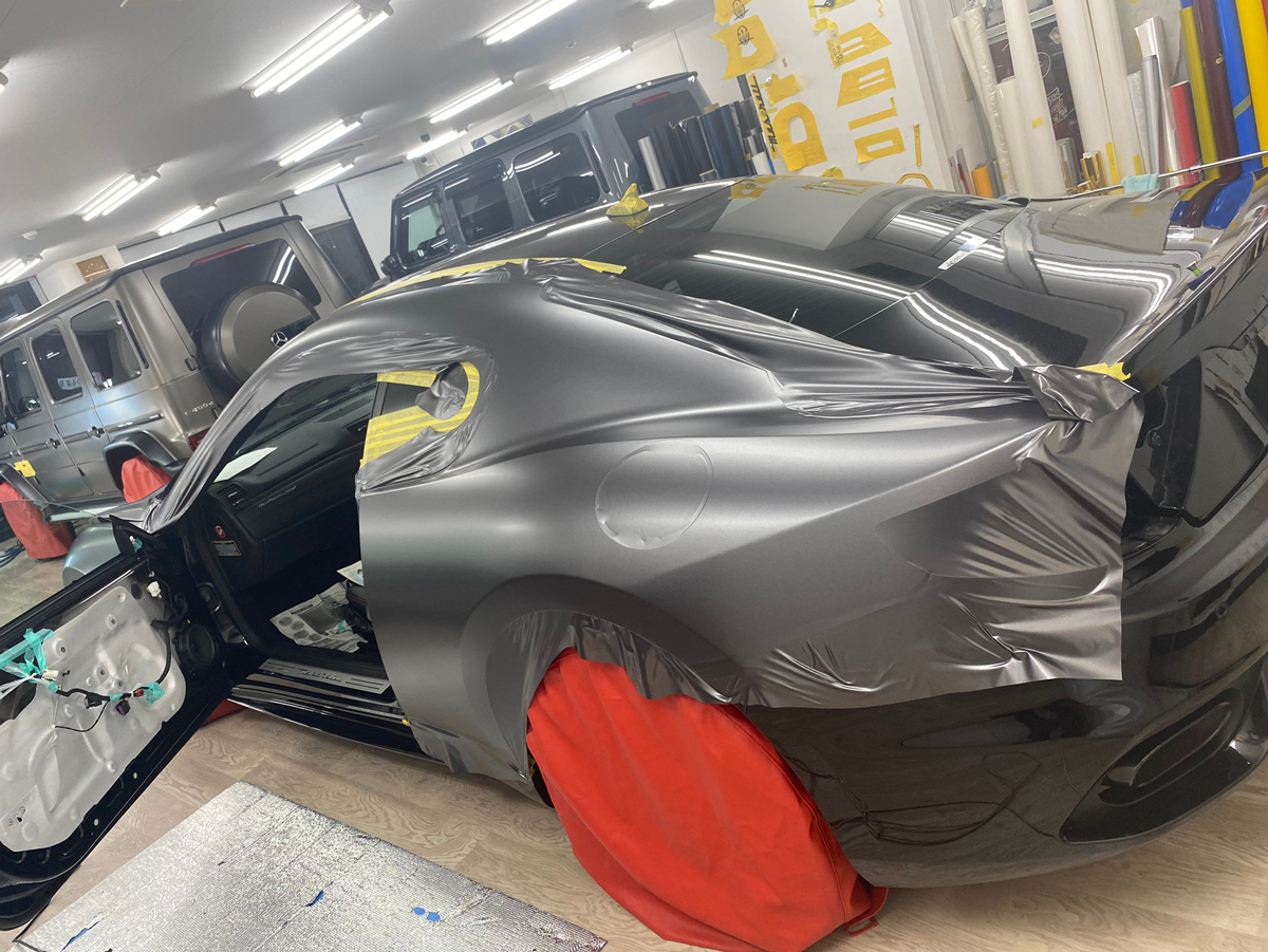 こちらにサテンダークグレー(半艶タイプ)のフィルムでフルラッピングしていきます。